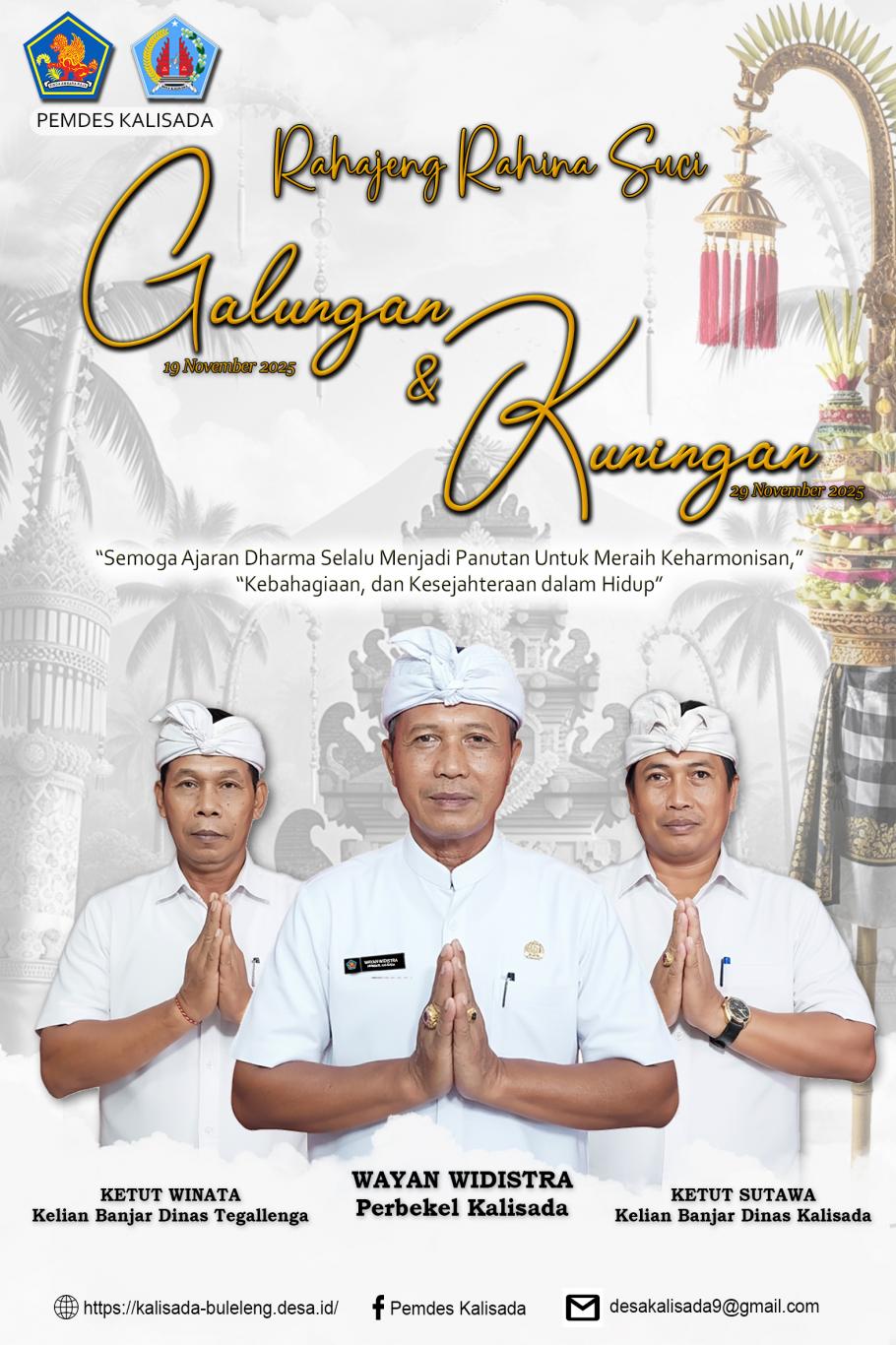 Pemdes Kalisada Ngucapang " Rahajeng Nyanggra Rahina Jagat Galungan lan Kuningan" majeng ring semeton sareng sami. Dumogi ajahan Dharma setata dados panutan ngemolihang Keharmonisan,Kerahayuan, lan Kerahajengan ring kahuripan.