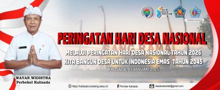 Pemdes Kalisada mengucapkan " Selamat Hari Desa Nasional" Semoga Desa terus bertumbuh, berdaya, dan menjadi Pusat Kemajuan Bangsa, serta tumbuhnya semangat Nasionalisme .